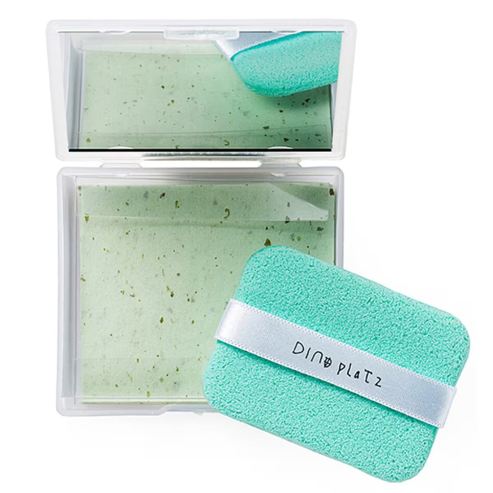 The Green Tea Blotting Paper is made from Chinese yam paper infused with soothing green tea leaves, rich in antioxidants to calm sensitive, acne-prone skin. With a gentle press, it instantly absorbs excess oil, softens the skin, and keeps makeup looking fresh. The lightweight case includes a reusable puff, mirror, and five adhesive pads for the puff, with one pad lasting for every 10 sheets.