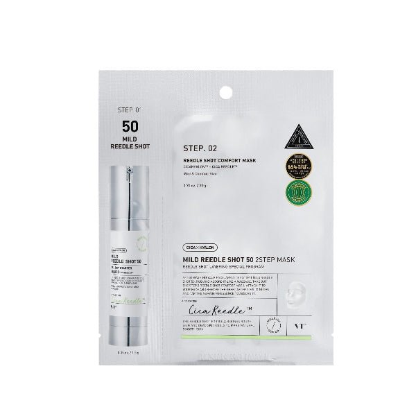 Mild Reedle Shot 50 Essence is formulated with CICA Reedles to refine and smooth the skin, providing micro-needling effects for improved texture. It penetrates deeply, enriched with Centella Asiatica Extract, Triple Hyaluronic Acid, Centella 4X Complex, and Green Propolis Extract. This essence addresses various skincare concerns and nourishes the skin, offering quick absorption and natural rejuvenation.