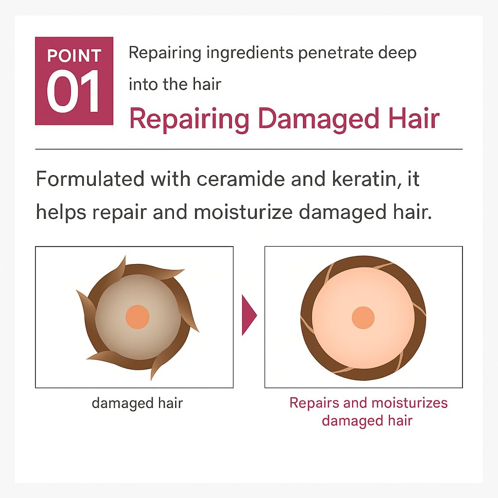- After shampooing, drain the water thoroughly, apply an appropriate amount to the entire hair (centred on the damaged area), leave it on for about 3 minutes, and then rinse.