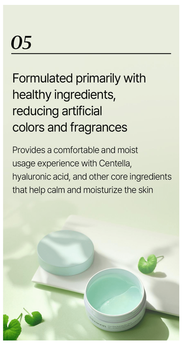 Formulated with multiple Centella Asiatica–derived ingredients and 10 types of Hyaluronic Acid with different molecular weights, this eye patch supports skin comfort and long-lasting hydration.