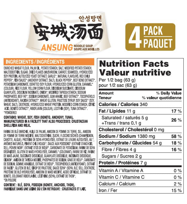 Nongshim Ansung Noodle is a noodle soup with a mildly spicy flavor. It boasts a rich aroma of shiitake mushrooms and miso, accompanied by a subtle spiciness. Incorporate your favorite ingredients into the Ansung Noodle Soup for a personalized touch. This beef and fermented bean flavor soup is ready in just 4-5 minutes and contains no added MSG.