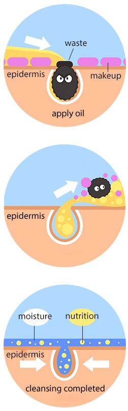 - Add a small amount of water to your face to emulsify the oil into a milky texture, continuing to massage.